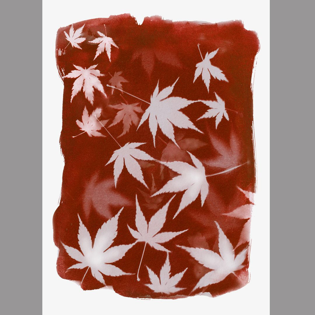 Rectangular greeting card, blank inside for your own message. Size: 12.3cm x 17.8cm. White envelope, packaged in biodegradable, compostable wrapper. this is an autumn brown version of the blue cyanotype. Also available as a tea towel.