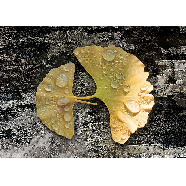 Digital collage produced as limited edition giclee print, signed and numbered by the artist. This image has a Certificate of Authenticity signed by printer and artist . Limited edition of 50 images in total. Digital collage, ginkgo leaves,